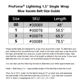 This single wrap blue karate belt by ProForce® Lightning still holds its iconic status as the best karate belt for the young kids and juniors in your martial arts school or club. Its overall construction is what, basically, makes it hard to beat. That is because in addition to its child-friendly and tie-easy length, it accommodates the young karateka's needs for support and comfort with its thick and nicely-weighted core, durable and non-slip cotton canvas material, and heavy-duty eight (8) rows of stitching. And, not just limited for karate, sports enthusiasts and martial artists also prefer this ProForce® Lightning 1.5” Single Wrap Blue Karate Belt for taekwondo, jiu jitsu, yoga, and other types of sports, exercise, workouts, and Asian martial arts. Features: